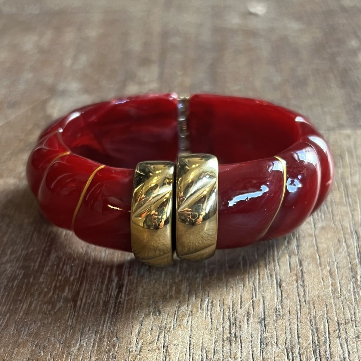 Cette manchette Alma bordeaux est une manchette en acrylique et acier inoxydable