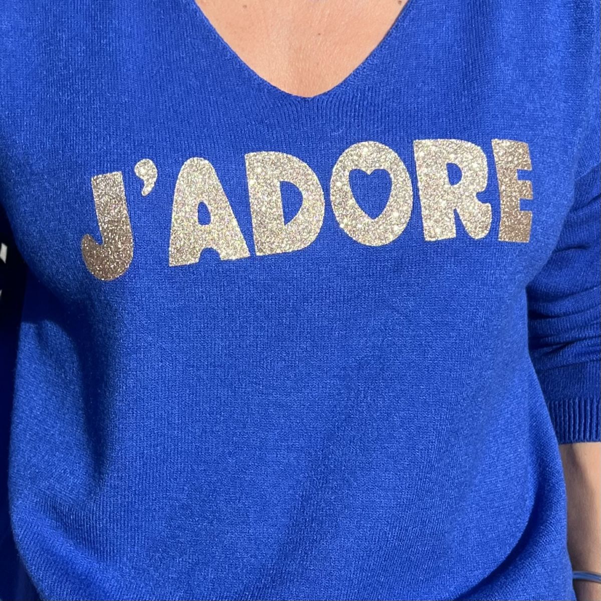 Pull J’adore bleu electrique et doré