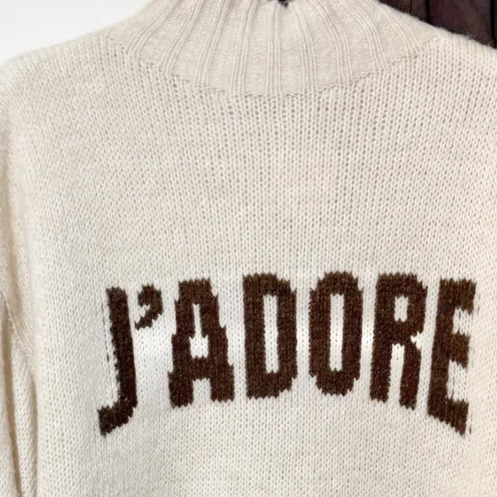 Ce pull J’adore écru est un pull à col roulé avec l’inscription « J’adore » en chocolat. Taille unique.