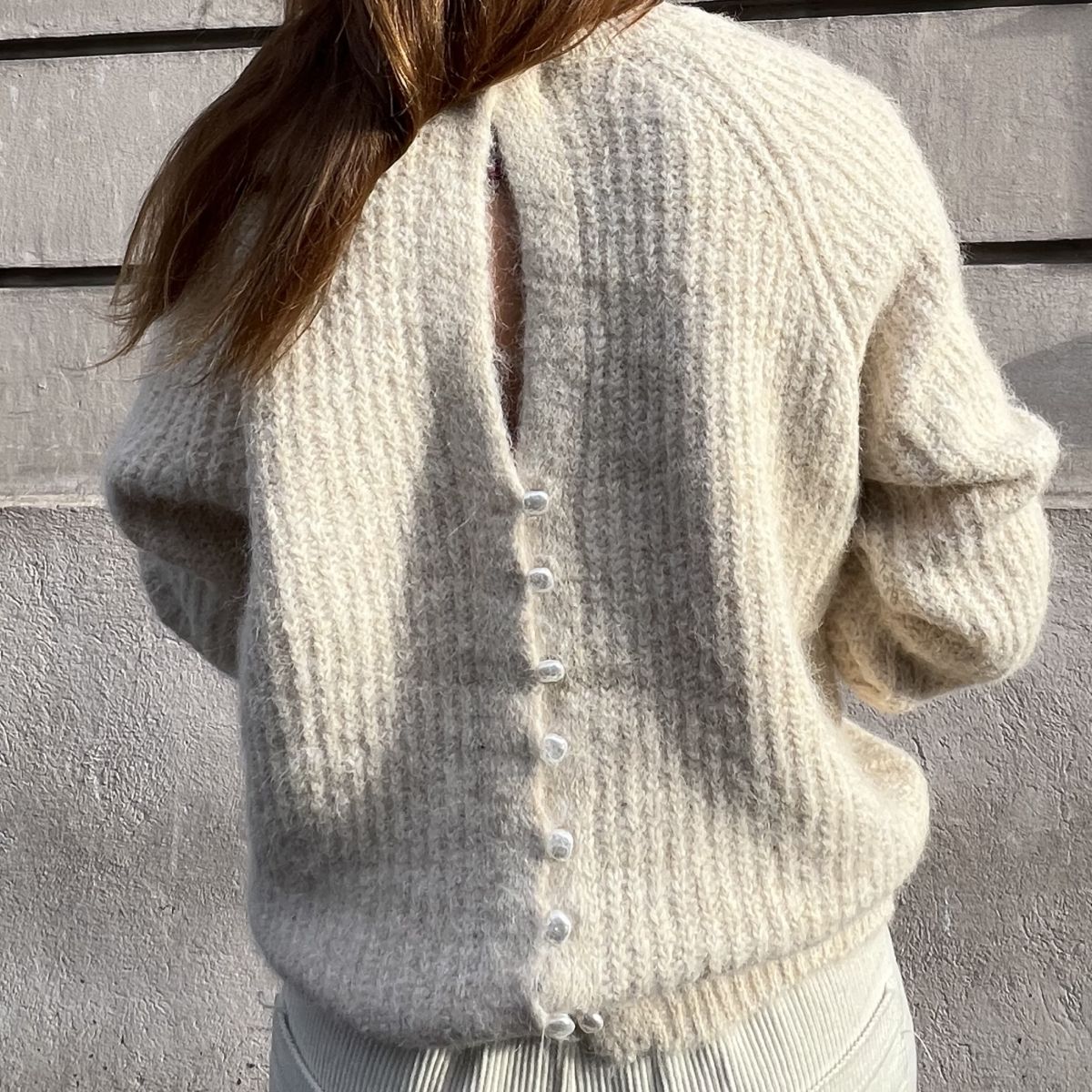 Ce pull Léonie écru tout doux et bien chaud contient 10% de laine. Très jolis détails dans dos avec une rangée de boutons nacrés pour le plus bel effet