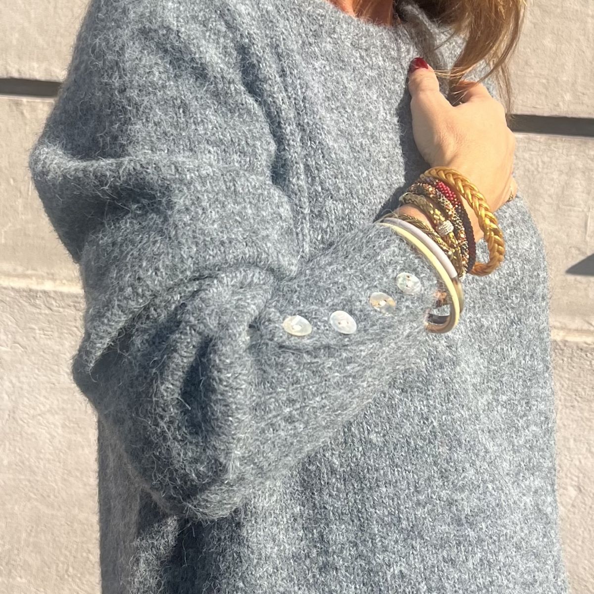 Ce pull Marie anthracite contient 10% de laine pour être sure d’être au chaud ! Jolis détails avec ses boutons en nacre sur les poignets.