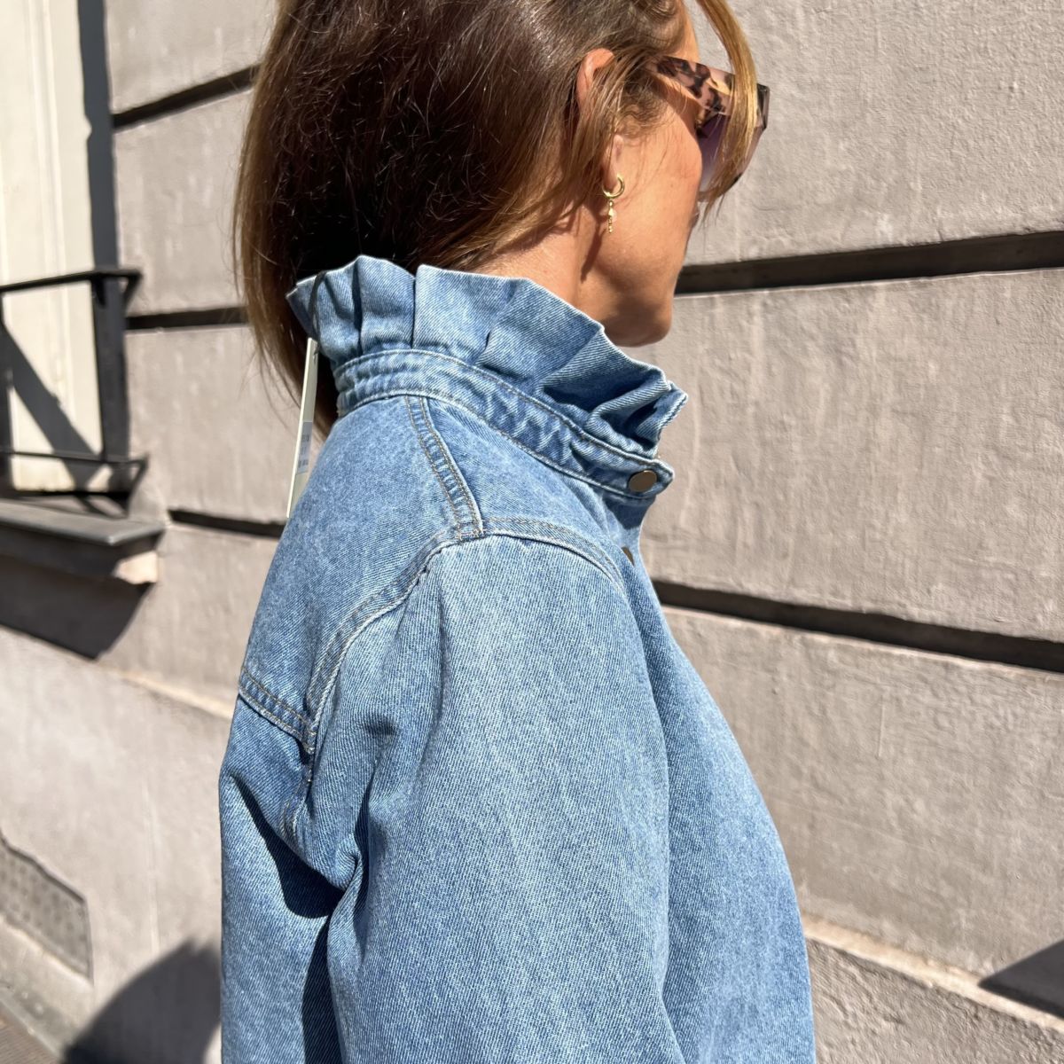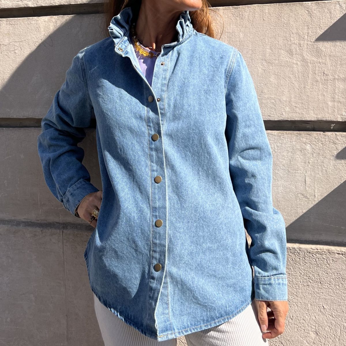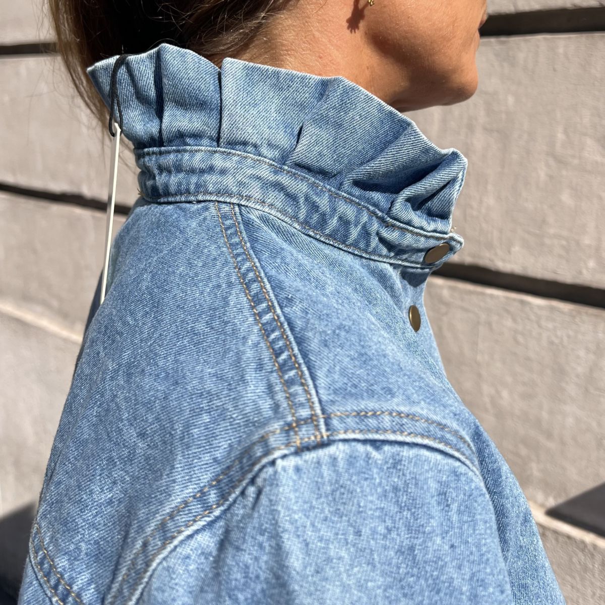 Surchemise / Veste Gisèle – Jean bleu – Col montant structuré.
