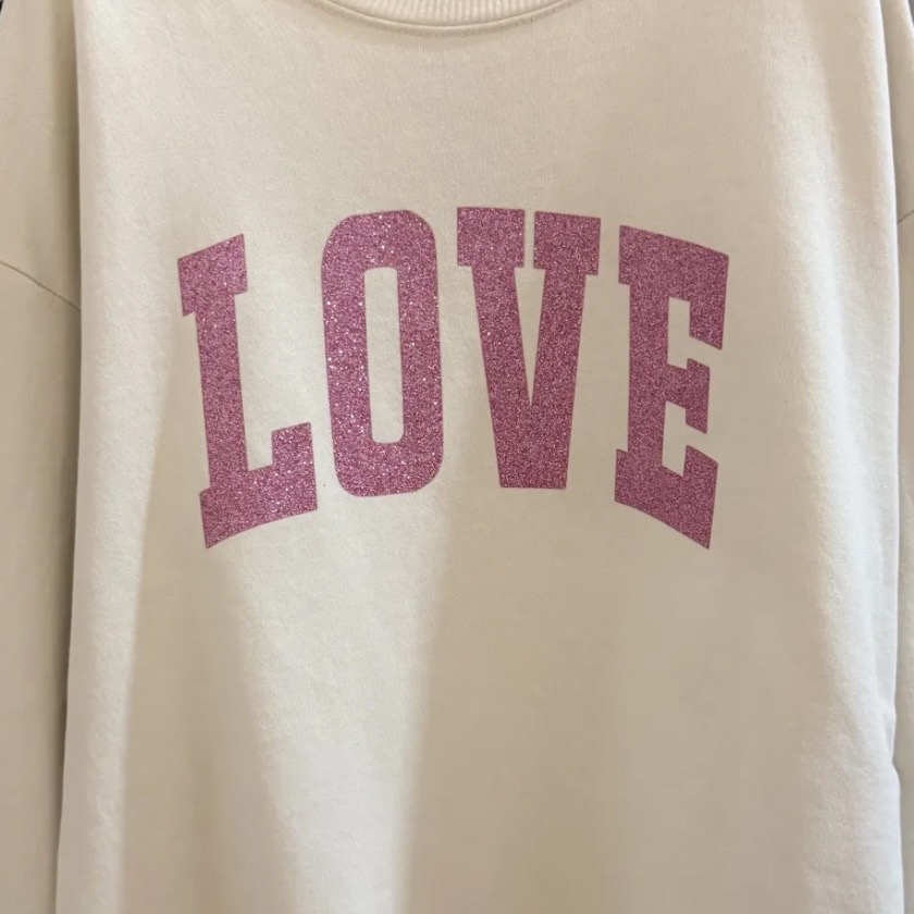 Sweat « LOVE » écru et rose pailleté