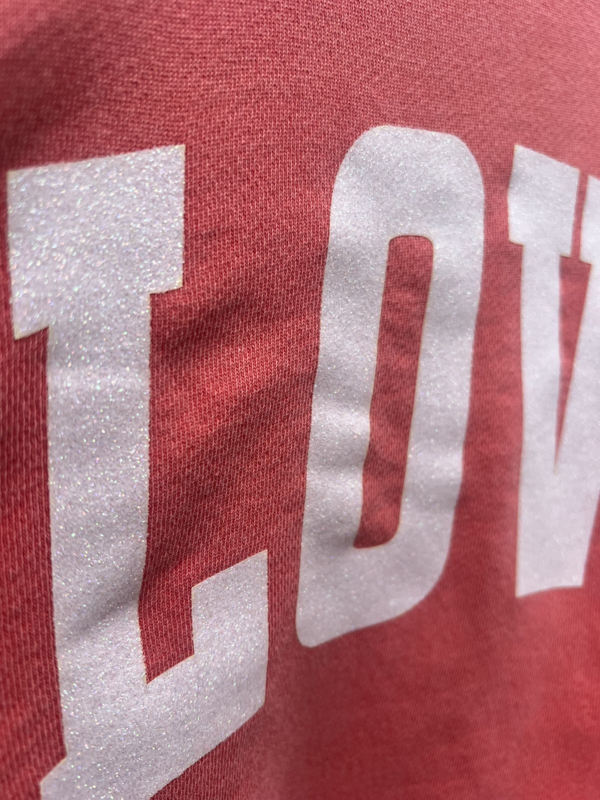 Sweat « LOVE » rouge délavé et blanc pailleté