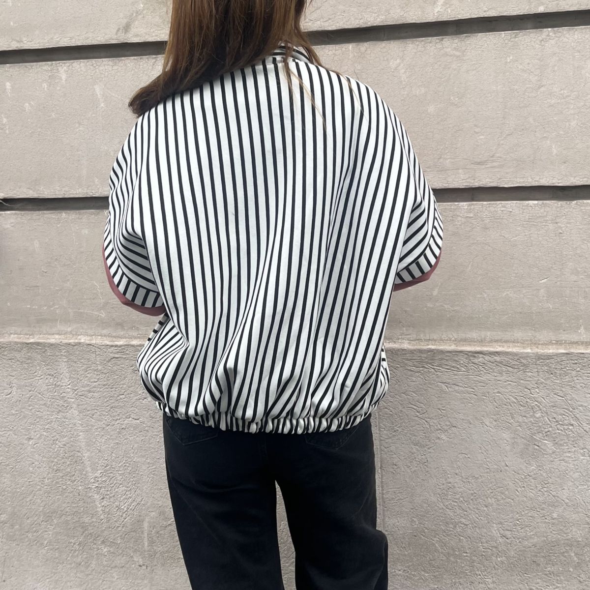 Ajoutez une touche graphique à vos tenues avec ce blouson Lucas, rayé au style affirmé et moderne. Confectionné en 100 % coton, il est à la fois léger, respirant et agréable à porter. Sa coupe ample, ses manches courtes et son élastique à la taille en font une pièce confortable, idéale pour la mi-saison. Le col montant et les poches à rayures contrastées ajoutent une touche d’originalité chic.